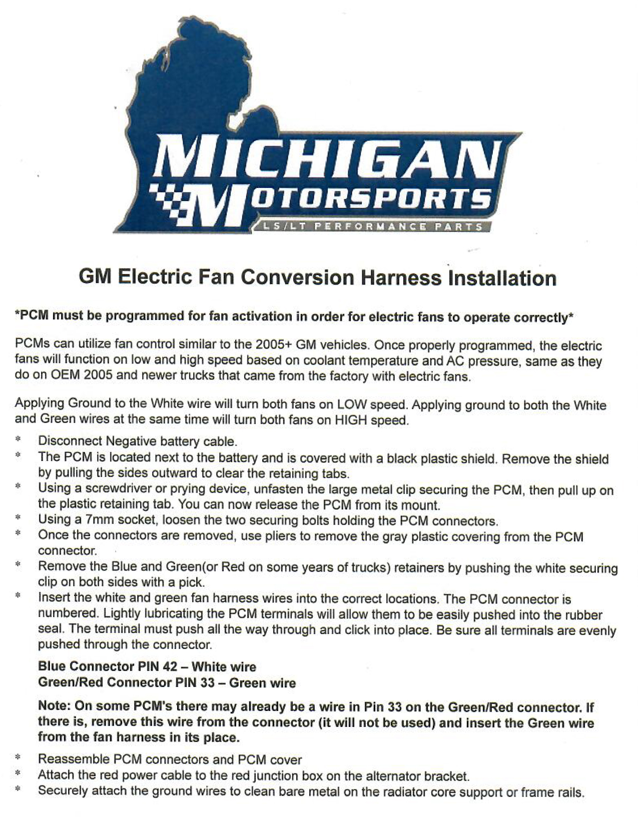 GM Electric Dual Fan Harness Instructions (FH320)